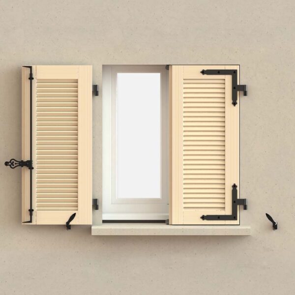 Be the first to review “Volet battant 2 vantaux sur-mesure – Lames ajourées à l’américaine – Bois laqué – Construction – Pose comprise”